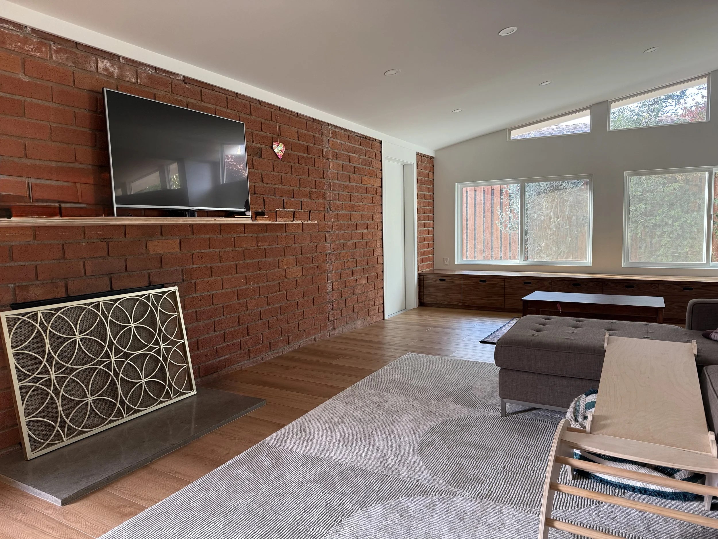 Designed and built a modern mid-century inspired room addition, seamlessly integrating it with the existing home. The project involved removing an exterior wall to create one expansive great room, complete with a custom kitchen. The craftsmanship was so precise that the client remarked you could not tell where the original home ended and the new extension began